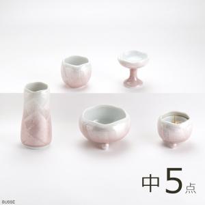 仏具 セット ほのか 九谷銀彩 ピンク 中サイズ 5点 /仏具セット ミニ モダン 手元供養仏具 日本製 陶器製 5点セット