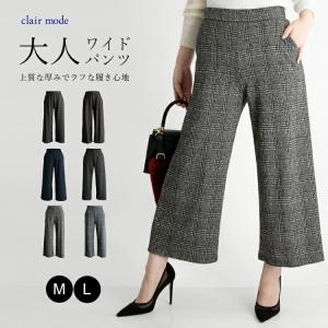 【送料無料/再入荷】 楽なのにキレイ見えする大人ワイドパンツ 6色 M L 洗える レディースファッション ボトムス ワイドパンツ 大人 無地 ストライプ チェック