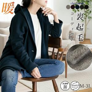 【送料無料】 裏起毛コーディガン 5色 M-3L 洗える 長袖 レディース アウター コート カーディガン フード付 裏シャギー おうちコーデ 大人きれい