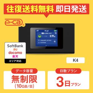 ポケットwifi レンタル 無制限(10GB/日) 3日プラン レンタルwifi wifi レンタル wi-fi ソフトバンク ドコモ au 楽天 K4