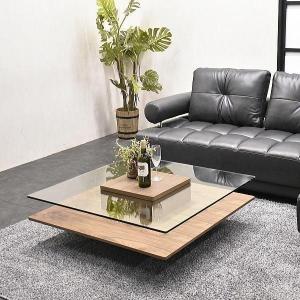センターテーブル 幅100cm モダン 強化ガラス ウォールナット材 おしゃれ モダン 北欧 コーヒーテーブル 高級 木製 収納 正方形 幅 100 cm 幅100 100cm