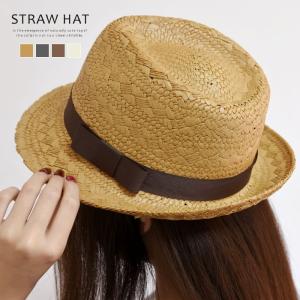 ハット 帽子 レディース 小物 シンプル 麦わら帽子 プレーン ブラック ミックス 中折れ