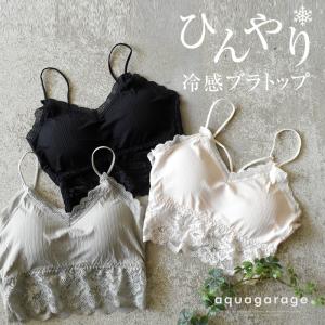 冷感ブラトップ レディース ノンワイヤー 裾レース キャミタンク キャミ ≪ゆうメール便配送20・代引不可≫