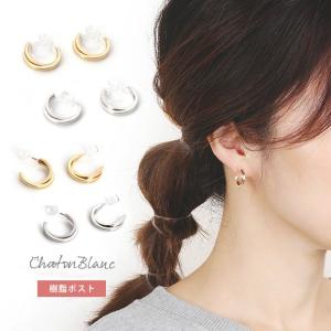 2連クロスライン樹脂フープピアス/イヤリング レディース ≪ゆうメール 便配送10・代引不可≫