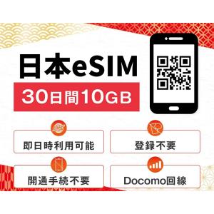 【24時間内QR送信】日本データ専用 eSIM 10GB 30日間 プリペイドeSIM Docomo ドコモ回線 即時 利用可能 快適 日本 sim Japan 10ギガ