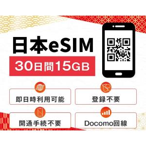 【24時間内QR送信】日本データ専用 eSIM 15GB 30日間 プリペイドeSIM Docomo ドコモ回線 即時 利用可能 快適 日本 sim Japan 15ギガ