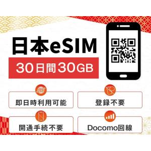 【24時間内QR送信】日本データ専用 eSIM 30GB 30日間 プリペイドeSIM Docomo ドコモ回線 即時 利用可能 快適 日本 sim Japan 30ギガ
