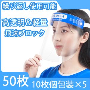 50枚セット フェイスシールド フェイスガード フェイスカバー 接客業 介護施設 医療 簡易式 男女兼用 水洗い 透明シールド 防塵 飛沫防止 軽量