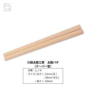 川田太鼓工房 太鼓バチ(テーパー型) 材質:ヒノキ サイズ(太さ):22mm(先)28mm(手元) サイズ(長さ):420mm