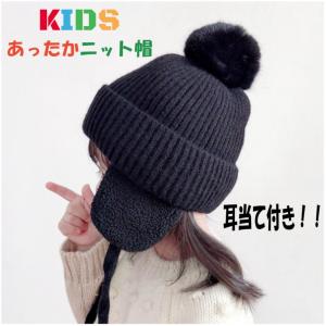 子供 ニット帽子 キッズニット帽 冬用 耳あて付き ベビー帽子 キッズ帽子 ポンポン 暖かい 防寒 保温 秋冬 羊毛 裏ボア 男の子 女の子 オシャレ かわいい