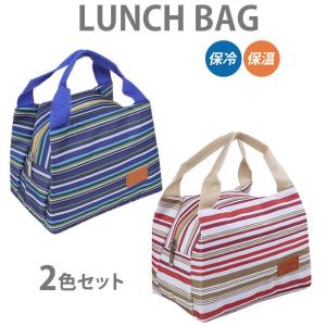 ランチバッグ 2個セット ブルー&レッド ボーダー柄 帆布 保冷 保温 トート おしゃれ ファスナー お弁当 送料無料
