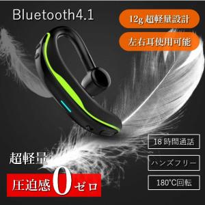 ブルートゥースイヤホン Bluetooth 4.1 ワイヤレスイヤホン 左右兼用 耳掛け式 ヘッドセット 片耳 高音質 マイク内蔵 日本語取説 180°回転 大容量