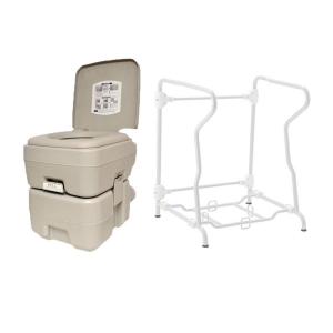 水洗トイレ 簡易ポータブルトイレ 20L / ポータブルトイレ用 手すり フレーム 10L 20L兼用 2点セット