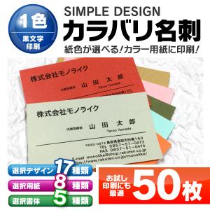 カラバリ 名刺 印刷 【 1色 モノクロ 】 50枚 ビジネス 名刺 挨拶 名刺印刷 名刺作成 シンプル カード お試し サンプル 開業 祝い 記念 プレゼント