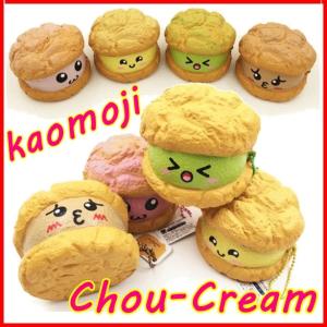 スクイーズ シュークリーム 顔文字 絵文字 低反発 可愛い ふわふわ やわらか キーホルダー 食玩 食品サンプル マスコット 甘い香り付き 選べる全4種