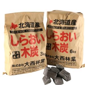 しらおい木炭 6kg+3kg バラ炭(計9kg入)国産 北海道産 黒炭 バーベキュー用 硬質