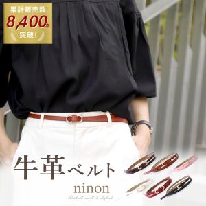 ベルト レディース 細 牛革 大きいサイズ リボン バックル ノンホール 簡単 ウエストマーク 小物 細め 細ベルト チューブベルト 無段階 調節 調整可能 ビジネス