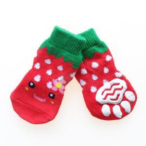 犬靴下 ネコポスメール便送料無料ソックス イチゴくつした 滑り止め ゴム付き 室内 ハイソックス ロングソックス 小型犬 中型犬 大型犬 S-XL 1セット4枚入