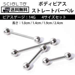 ボディピアス ストレートバーベル [14G] 軟骨ピアス 耳たぶ 口ピ 鼻ピ ステンレス メンズレディース (長さ1cm 1.4cm 1.9cm 2.4cm) [SCIOLTO(ショルト)]