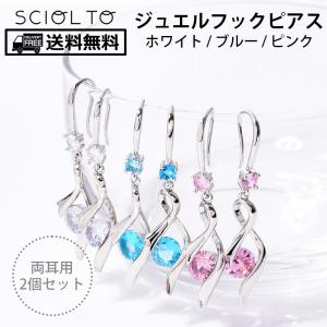 ジュエルフックピアス 揺れるピアス [両耳 2個セット] キュービック ジルコニア レディースピアス [SCIOLTO(ショルト)]