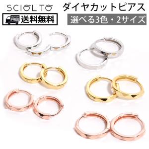 ダイヤカットピアス シンプルピアス フープピアス [18G 両耳 2個セット] ミラーカット 中折れピアス [SCIOLTO(ショルト)]