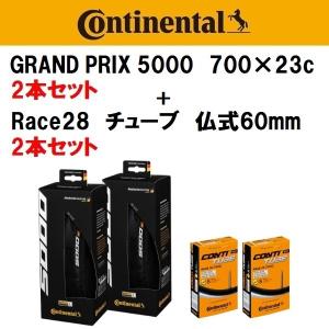 タイヤとチューブ各2本セット Continental コンチネンタル GRAND PRIX 5000 グランプリ5000 700×23C + Race28 仏式60mm