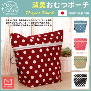 おむつポーチ 消臭ポーチ 水玉キャンバス ドット 消臭おむつポーチ オムツポーチ トラベルポーチ マナーポーチ 小分けバッグ 出張ポーチ ポーチェ