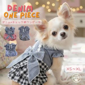 犬の服 秋 春 夏 ワンピース 猫 ねこ おしゃれ 犬 服 かわいい ペット服 ドッグウェア洋服 チェックデニムスカート ペットグッズ専門店 りんごのほっぺ