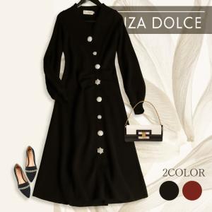 ニット ニットピース ワンピース レディース パール パールボタン ビジュー 長袖 フリーサイズ 大きいサイズ 20代 30代 40代 50代 60代 春 夏