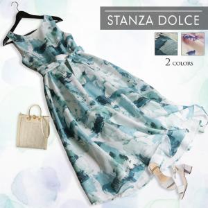 ワンピース レディース アート柄 総柄 ノースリーブ ロング マキシ フレア ベルト 上品 大人 20代 30代 40代 50代 60代 春 夏