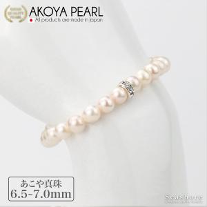 アコヤ真珠 ブレスレット ワンポイント ロンデル レディース ホワイト 6.5-7.0mm 保管用グレーケース付 透明強化ゴム あこや パール シーショア 爆買(5778)