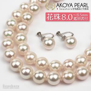 花珠真珠 パール ネックレス あこや真珠 2点セット イヤリング/ピアス 8.0-8.5mm 鑑定書 フォーマル 冠婚葬祭