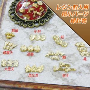 極小パーツ レジン封入用 達磨・熊手・大黒天・恵比寿・破魔矢・小判・鯛・蛙・瓢箪・亀 パーツ 10個 縁起物 和物 国産品