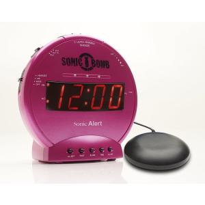 振動型目覚まし時計 Sonic Bomb スーパーボム 大音量 113db サイレントバイブで快適目覚め LED 5段階調光 ボリューム調整 スヌーズ設定 最大90分 (ピンク)