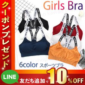 スポーツブラ おしゃれ ジュニア ヨガブラ かわいい 6色 ノンワイヤー フィットネスブラ ワイヤーなし パット入り ブラック ホワイト オレンジ ネイビーグレー
