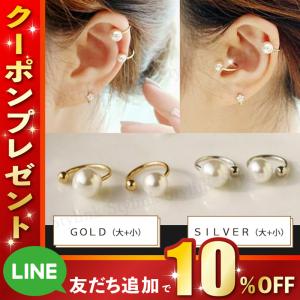 イヤーカフ イヤリング ゴールド パール 大小 2個セット シンプル ゴールド 2個 セット 片耳用 フェイクピアス プチプラ イヤークリップ 挟むだけ 簡単 金