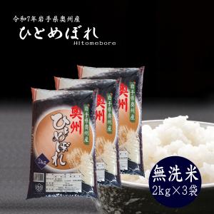 米 2kg×3袋 無洗米 岩手県奥州市産ひとめぼれ 令和7年産 ご飯 コメ 送料無料