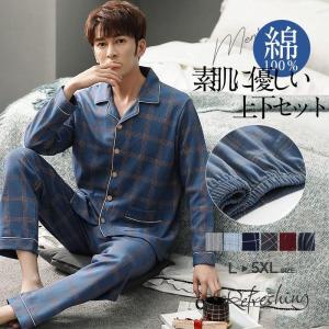 パジャマ メンズ 綿100% 綿 メンズパジャマ ルームウエア 長袖 前開き 秋 冬 寝巻き 肌触り セットアップ 上下セット 紳士 部屋着 入院