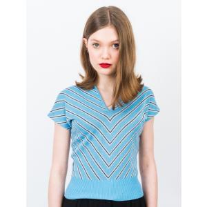 POP BOUTIQUE S/S ストライプ/ボーダーニット〈スカイブルー〉