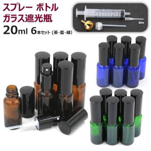 スプレーボトル 遮光 ガラス ボトル 遮光瓶 霧吹き スプレー容器 香水 次亜塩素酸 遮光性 ガラス容器 紫外線 遮光瓶ガラス(20ml 6本セット/茶色・藍色・緑色)