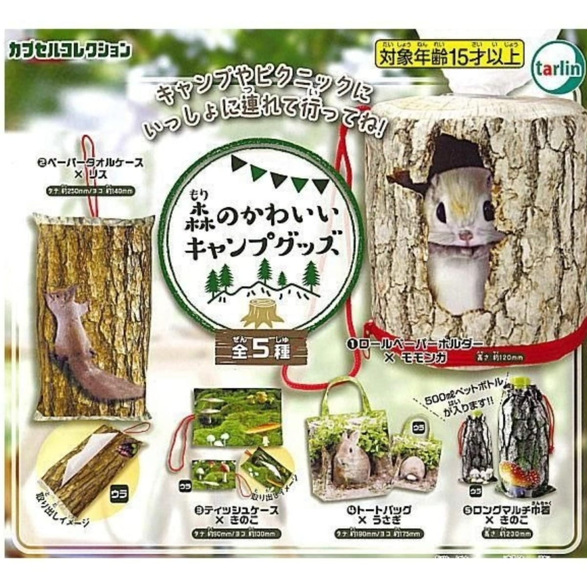 内容 <2> ペーパータオルケース × リス <3> ティッシュケース × きのこ <4> トートバッグ × うさぎ <5> ロングマルチ巾着 × きのこJAN:4580594183076 4種アソートセット(4種×各1個ずつ)モンガやリスなどの森の小動物がキャンプグッズとして登場!ロールペーパーやペーパータオルを入れて手軽に持ち歩けるよ♪