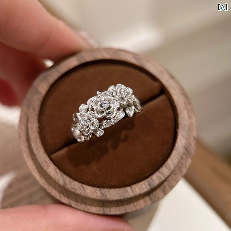 ・種類: 指輪・素材: 925シルバー・デザイン: 花・加工: ブラスト・スタイル: 女性用・色: ホワイト・サイズ: US5 (HK10-11), US6 (HK12-13), US7 (HK14-15), US8 (HK16-18)・モチーフ: バラ,花,花びら・分類: スイート