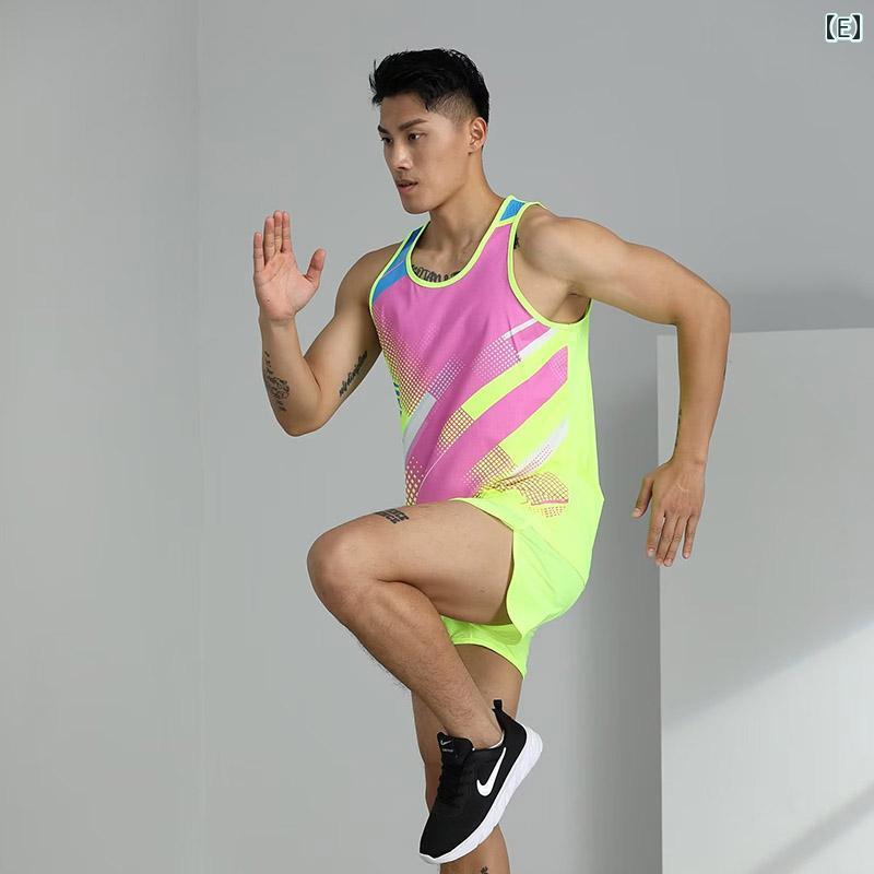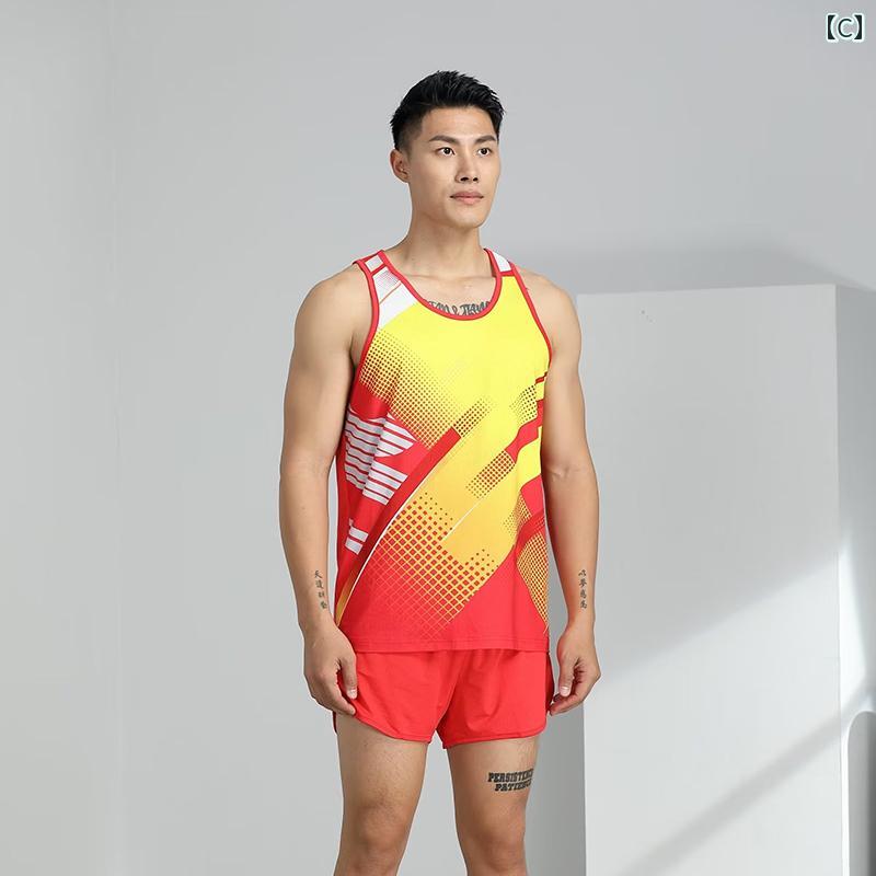 陸上 トレーニング ウェア メンズ レディース マラソン ランニング 速乾 タンクトップ ショートパンツ セットアップ 競技用 大きいサイズ 白 赤 青