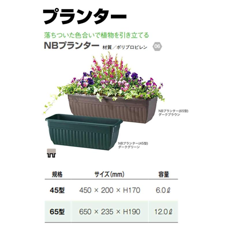 NBプランター45型サイズ:幅450×奥行200×高さ170mm容量:6Lポリプロピレン材質: