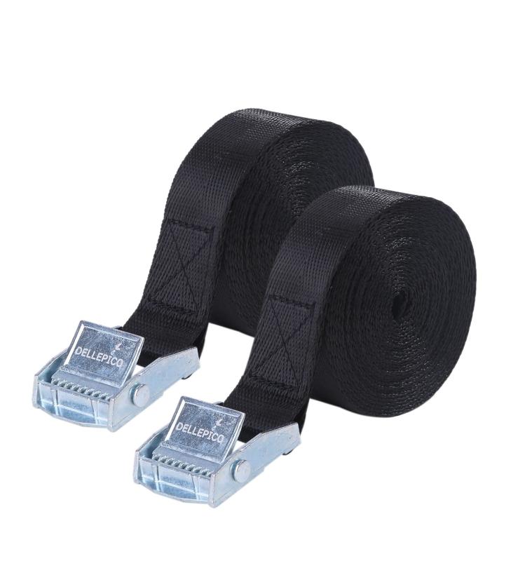 Dellepico 荷締めベルト 固定ベルト 結束バンド 最大使用荷重100kg 荷締バンド 梱包 固定バンド 地震対策グッズ 2m 3m 4m 2本セット✅【2本セット最長4m~8mまで】2本セットになっており、サイズの小さな物は2本でがっちりと固定できて、大きいサイズも繋げることで最大4mまでご利用可能です。✅【固定簡単&ガッチリ固定】カムバックル 式のロックで ベルトを通して引っ張るだけで簡単に固定できて、とても便利です。✅【業務用でも使用可能】トラック輸送・陸海運業界・FA分野・パレット搬送などはもちろん、工場間輸送に繰り返しご使用いただける梱包資材としてお勧めです。✅【多用途&防災グッズ】多用途 の ベルト として車の ルーフキャリア 用ベルト・オートバイ・キャンプ・アウトドア・スポーツ器具などの個人向け搬送の道具のみならず、近年発生の多い地震やゲリラ豪雨台風の 対策グッズ として会社や一般家庭では バイク・シャッター・物置・商品棚などの固定にもお勧めです。✅【商品仕様は】・2mベルト2個セット・ ベルト サイズ:幅25mm、長さ2m、厚み1.2mm ・ バックル サイズ:幅32mm、長さ:42mm ・破断荷重:100kg、最大使用荷重:50kg、安全係数:2 ・重量:80g ・ベルト 材質:ナイロン100%