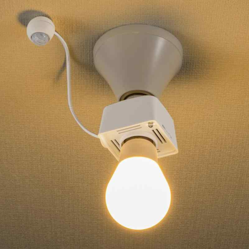 OHM センサーソケット E26対応 人感センサー 停電補助灯 HS-LPBA4-W 04-8391お使いの照明がセンサーライトに…人が近づくと自動点灯・離れると自動消灯で消し忘れ無し。点灯時間は約60秒…点灯中に人の動きを再検知すると、その時点から再び60秒継続点灯します。本体と口金の連結箇所が回転してセンサーの向きを自由に調整できます。階段・廊下、トイレ、物置などに停電補助灯付き。停電になると約5分間自動点灯します。