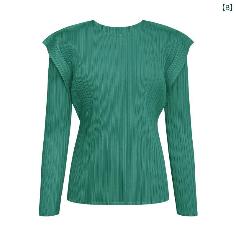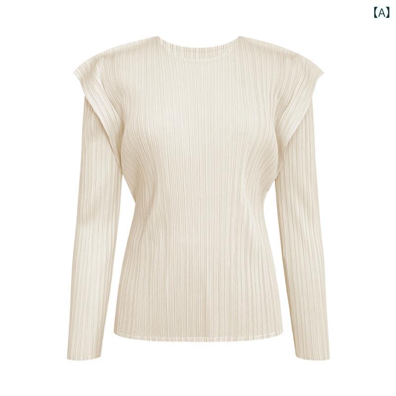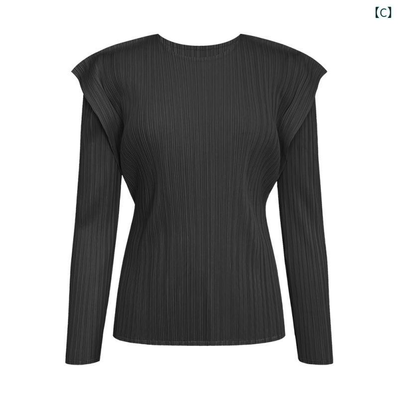 ・素材: ポリエステル・柄: 無地・スタイル: プルオーバー・袖丈: 長袖・シルエット: ゆったり・着丈: ミドル丈(50cm超~65cm以下)・ネックライン: ラウンドネック・袖のタイプ: レギュラー袖・デザイン: プリーツ・カラー: ベージュ, グリーン, ブラック, ブラウン・サイズ: フリー・スタイル: 韓国、カジュアル・主な素材の含有量: 90%以上・カテゴリー: Tシャツ
