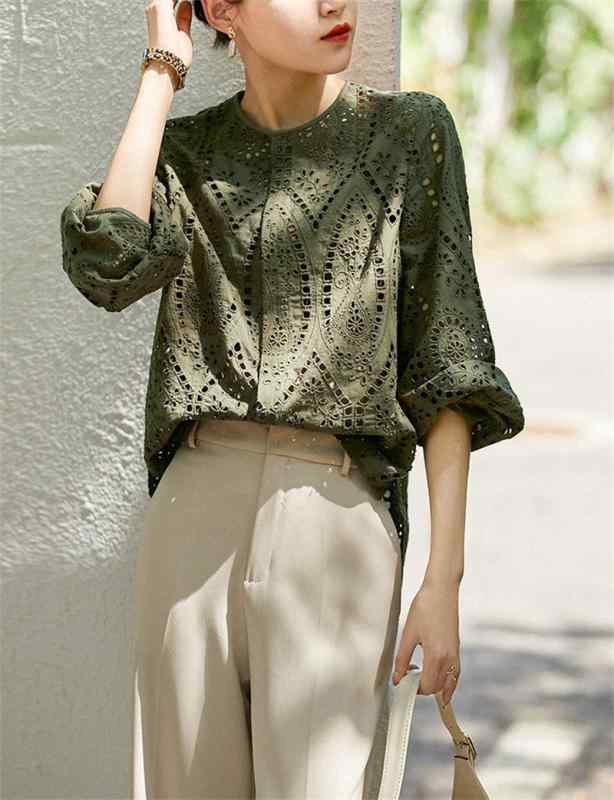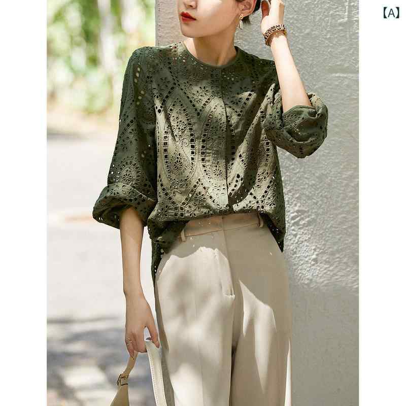・カテゴリ: シャツ・素材: ポリエステル、その他・柄: 無地・スタイル: プルオーバー・袖丈: 9分袖・フィット: ルーズ・着丈: 普通(50cm超~65cm以下)・ネックライン: ラウンドネック・袖: ランタンスリーブ・ディテール: 刺繍・カラー: グリーン、カーキ・サイズ: S、M、L、XL、2XL・テイスト: 通勤・フロント: プルオーバー