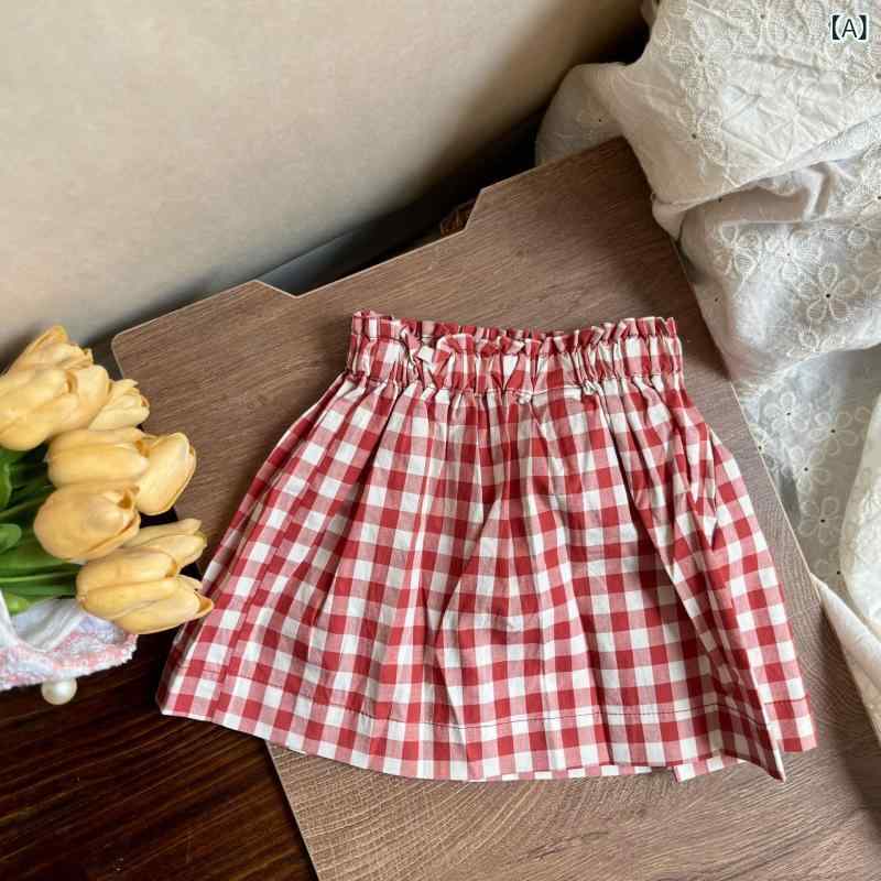 ・カテゴリ: 半身スカート・スタイル: 韓国風・主な素材: 綿100%・柄: 格子・カラー展開: 赤格子・サイズ展開: 80、90、100、110、120、130、140・対象年齢: 3〜8歳・対象身長: 100〜140cm・対象性別: 女児・スカート丈: A字・デザイン要素: 可愛い・季節: 夏・裏地素材: 綿91〜99%・生地加工: 柔軟処理