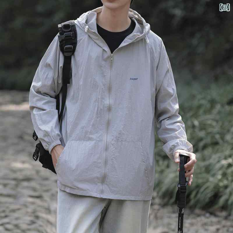 アウター 男性用 ナイロン 接触冷感 薄手 ルーズ フード付き ウインドブレーカー カジュアル スポーツ ウェア メンズ レディース ジャケット